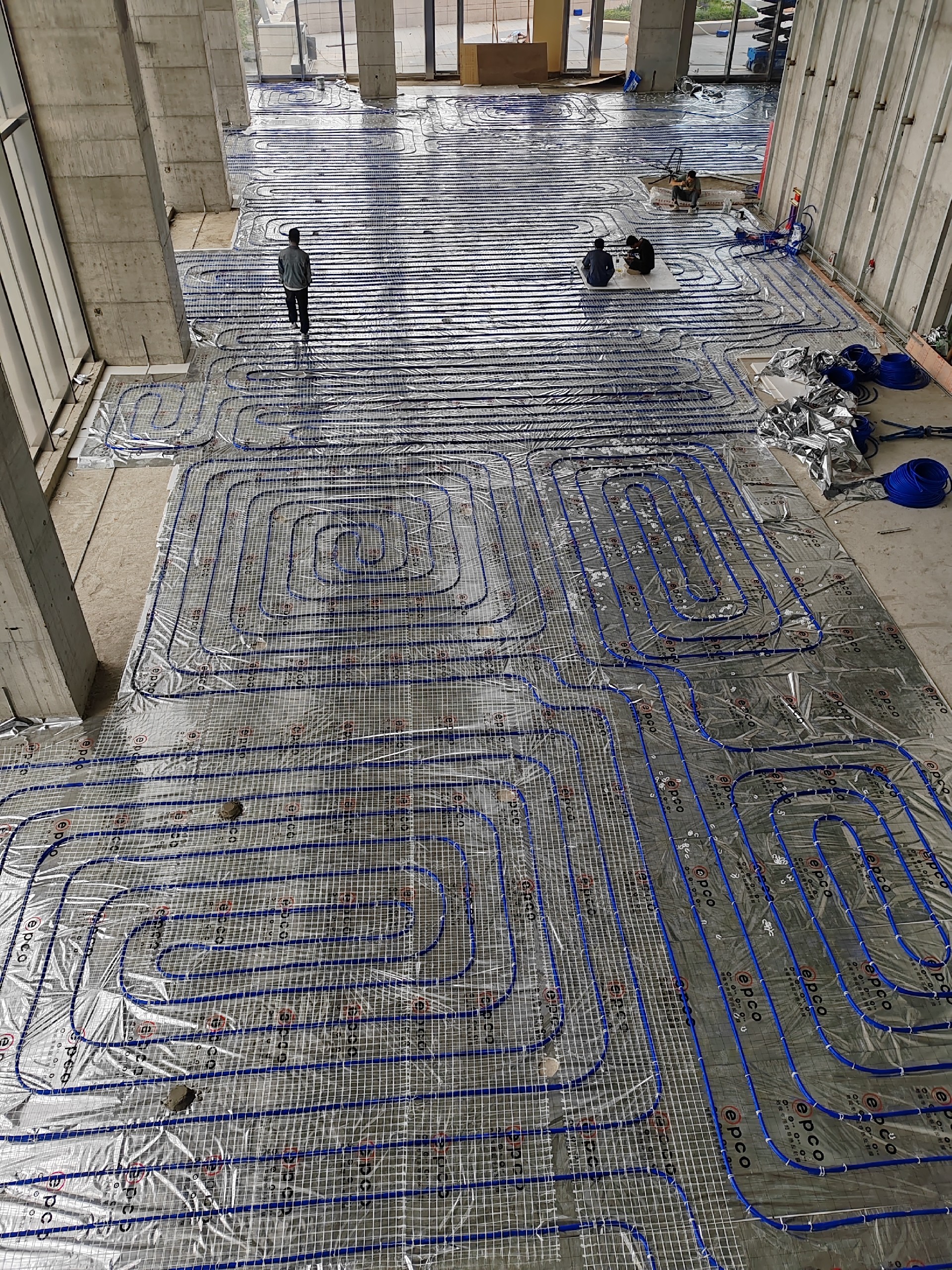 上海市美兰湖高端写字楼,项目整体采用epco爱普品牌分集水器,保温板,反射膜,硅晶网,地暖管道;
